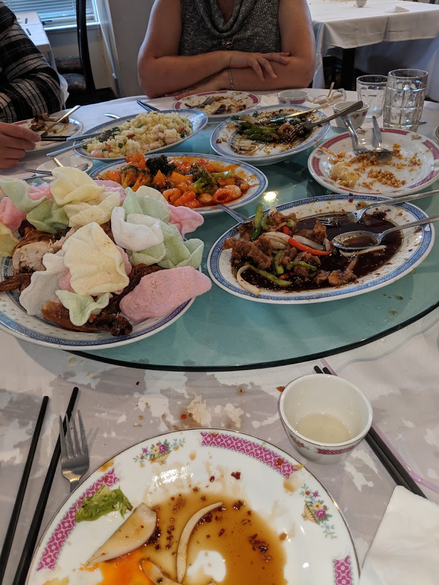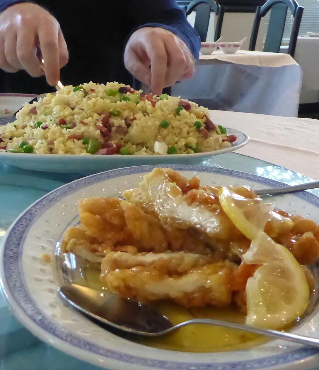 We got take out for supper. Veggie chow mein had tons of fresh veggies (broccoli, cauliflower, carrots, baby corn, mushrooms etc). The texture of the noodles was good, a mix of soft and saucy and crunchy. The veggie spring rolls were super crunchy and good. The sweet and sour cod was the highlight! Such a creative twist on a old fave. Garlic guy lan was good too. Maybe they will have dine in again one day- I would love to go for dim sun there some day!